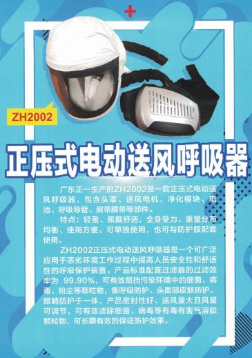 廣東正一生產(chǎn)的該產(chǎn)品(ZH2002)是一款正壓式電動(dòng)送風(fēng)呼吸器。產(chǎn)品主機(jī)包含頭罩、送風(fēng)機(jī)